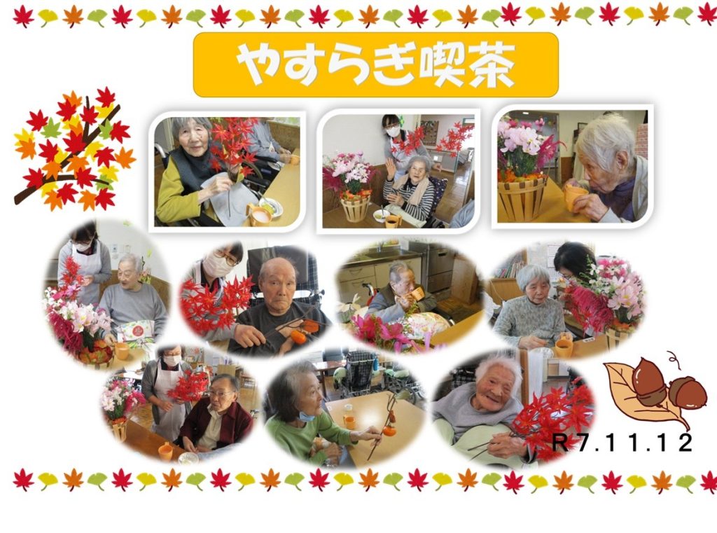 今月のやすらぎ喫茶は昼間暖かったせいかカルピスが人気でした。お菓子はスイートポテトとさつま芋プリンを召し上がっていただきました。